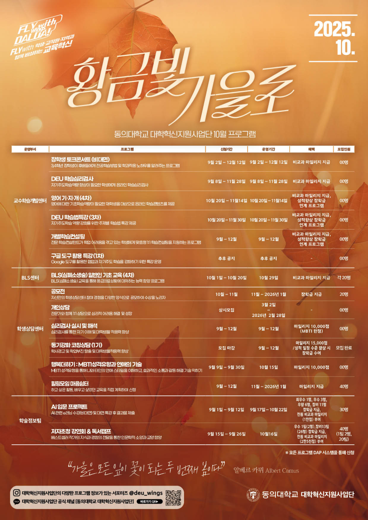 [대학혁신지원사업] 월간 프로그램(10월) 운영 계획표 안내