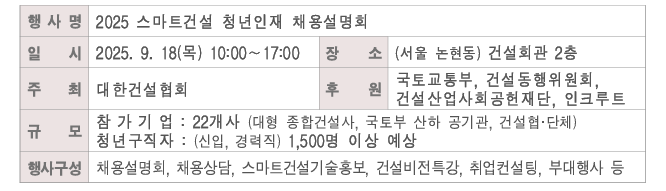 「2025 스마트건설 청년인재 채용설명회」개최 안내