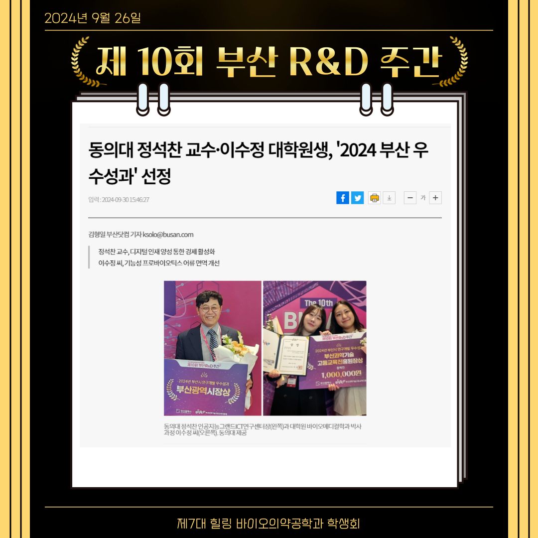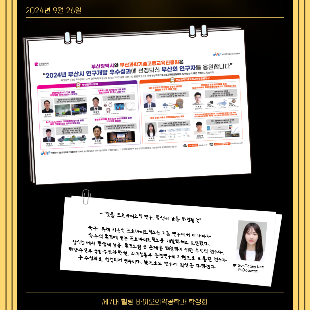 바이오의약공학과 박사과정 이수정, '2024 부산 우수성과' 선정