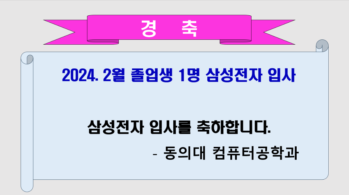 2024. 2월 졸업생 1명 삼성전자 입사 삼성전자 입사를 축하합니다.