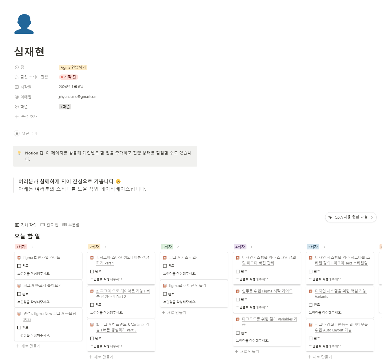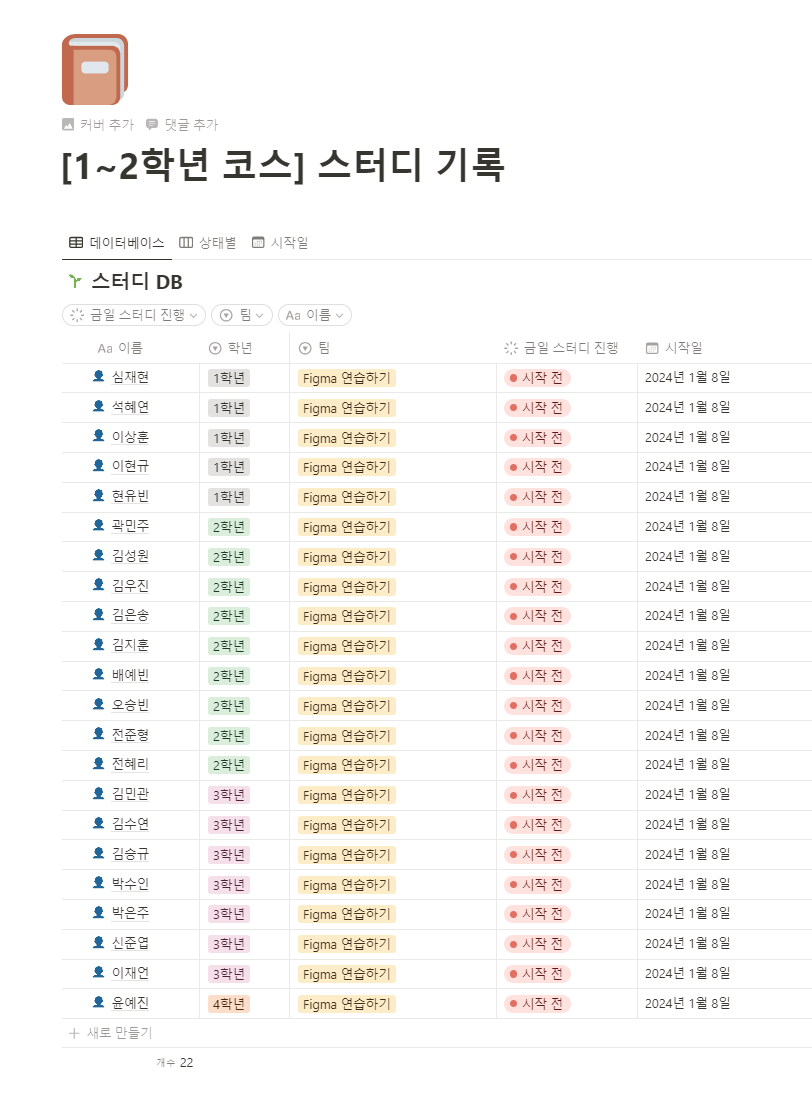 이번 프로그램은 1월 8일부터 진행되며 매주 월요일부터 금요일까지 각자 스터디를 진행할 예정입니다. 참가 대상은 동의대학교 인간공학과 재학생 전원이며, 그룹별로 나뉘어 세부 일정이 운영될 예정입니다. Notion을 통해서 각자 스터디 진행 현황을 기록하고, 서로 진도를 보면서 독려도 하면서 스스로 공부할 수 있는 시간을 가질 예정입니다.