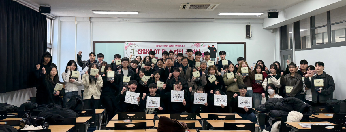 2월 26일 수요일, 인문사회과학대학 입학식과 법학과 ot 및 소법전 증정식이 성공적으로 마무리되었습니다.