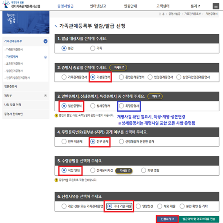 * 개명 사실 확인이 필요시, ‘특정-개명·성본변경’ 유형 제출바랍니다.