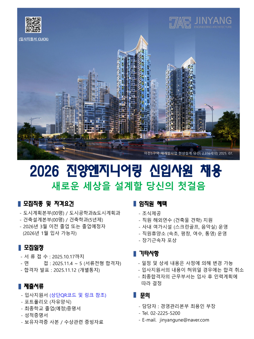 [ (주)진양엔지니어링건축사사무소 26년 신입사원 채용 안내 ]