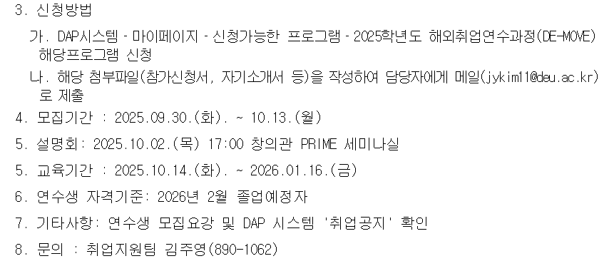 [2025학년도 동의대학교 해외취업연수과정(DE-MOVE) 연수생 모집 안내]
