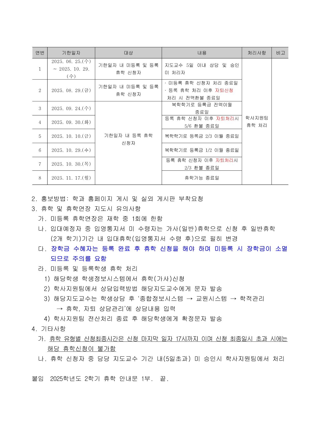2025학년도 2학기 휴학 및 휴학연장 일정 및 내용 안내.hwp