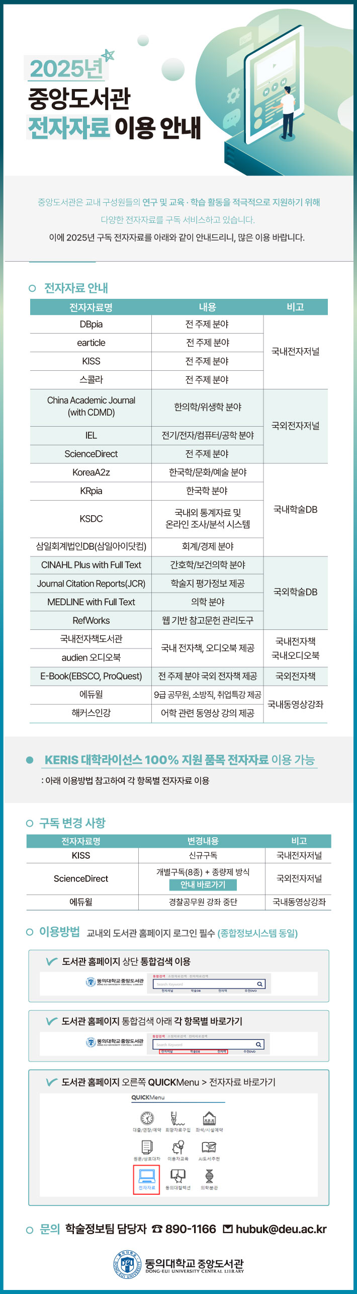 비고: 안내 포스터는 [도서관 홈페이지 > 커뮤니티 > 전자정보공지] 게시되어 있음