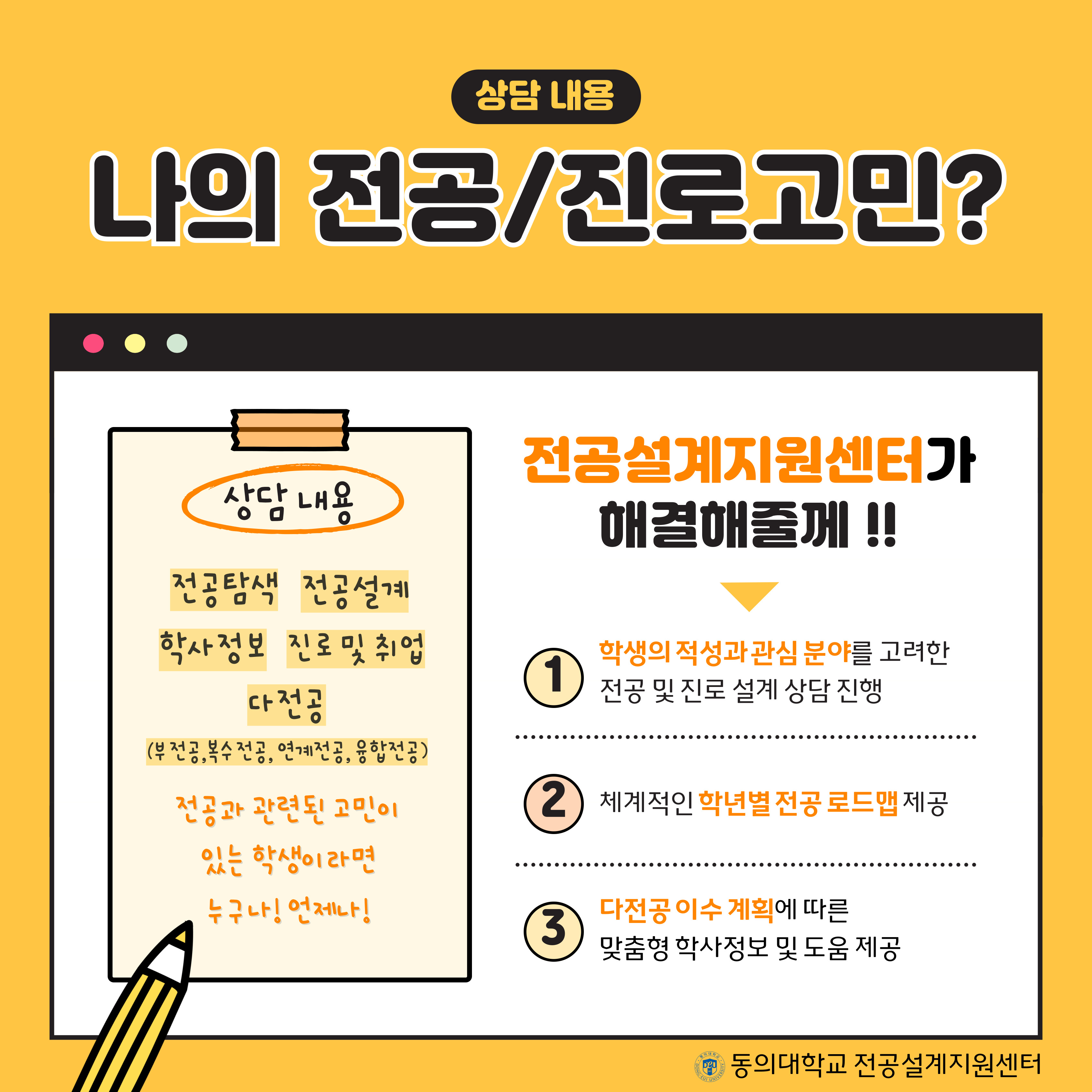 💛상담 내용 : 진로탐색, 전공설계, 다전공, 학사정보, 진로 및 취업 등